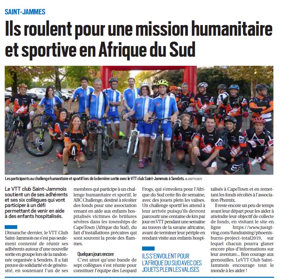 Un de nos amis membres du Vtt Club Saint-Jammois participe à ce beau challenge humanitaire à VTT au profit des enfants victimes de brûlures sévères en Afrique du Sud : le ABC Challenge.