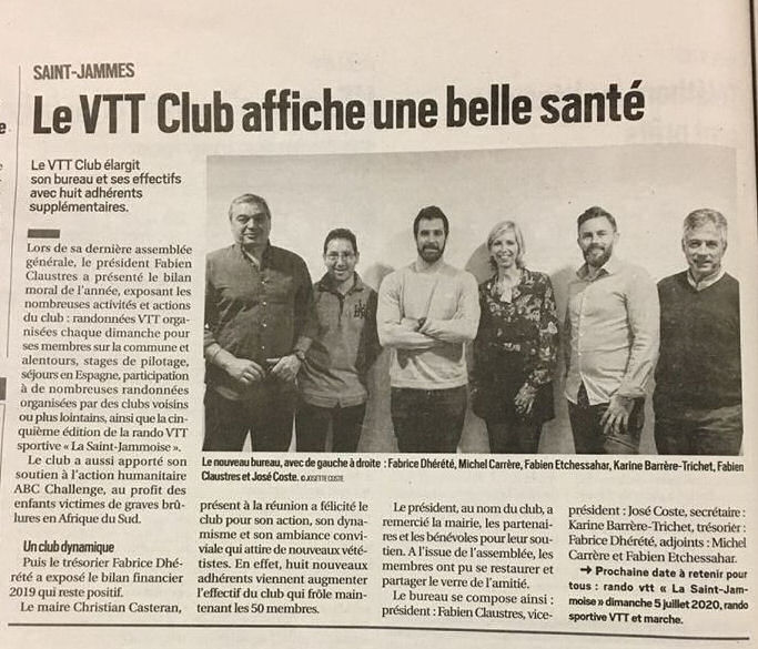 Un bel article dans le journal avec, en photo, l'équipe des Léopard Frogs qui participe au challenge et le VTT Club Saint Jammois.